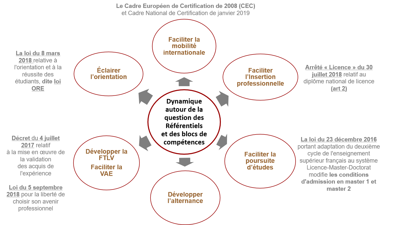 En Europe, la question des compétences et de la formation des compétences a été posée par les instances européennes lors du processus de Bologne de 1999 dans le cadre de discussions relatives à l’employabilité et la mobilité des citoyens Européens.