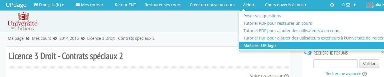 Derrière UPdago se cache Moodle : UPdago est le nom donné à une plateforme Moodle, outil sous licence libre, utilisé dans de nombreuses universités pour la gestion des cours en ligne.