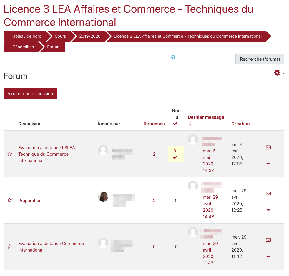 L’usage du forum dans un contexte d’enseignement universitaire s’appuie dans ce cas sur une pratique de plusieurs années (depuis 2012), ainsi que sur un questionnement étayé dans des